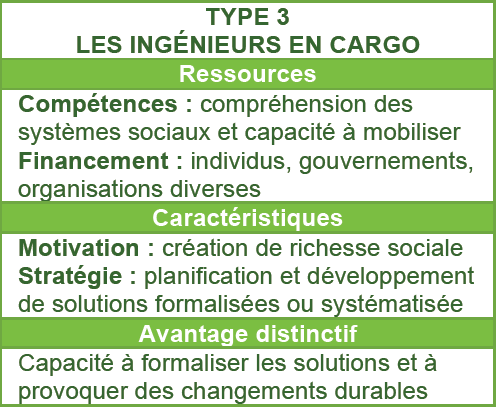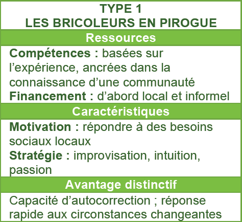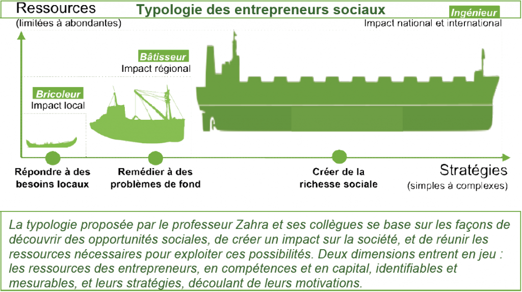C’est un peu la même chose pour l’entrepreneuriat social, avec ses diverses formules et ses objectifs variés. Pour nous aider à identifier les capitaines du changement social, Shaker A. Zahra, chercheur à l’université du Minnesota, propose, avec ses collègues, un professeur canadien et deux américains, une typologie des entrepreneurs sociaux en trois catégories : les bricoleurs, les bâtisseurs et les ingénieurs.